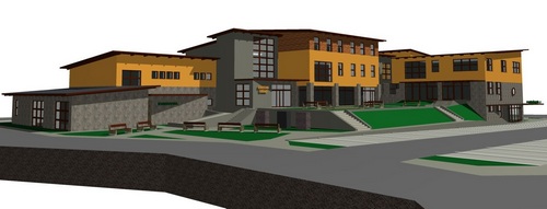 1. Objekt A (multifunkční sál, obřadní síň, knihovna a vzdělávací centrum, kanceláře, obchody, startovní byty)