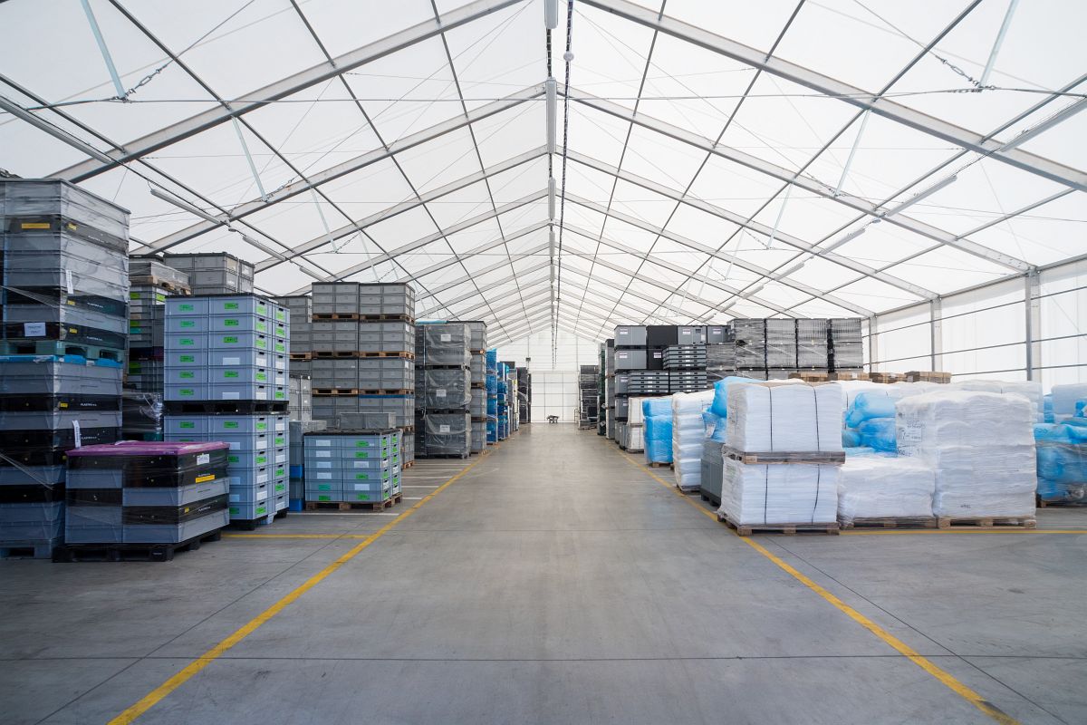 -Стандартный зал из алюминиевой конструкции размером 48 х 26 м, предназначенный для хранения